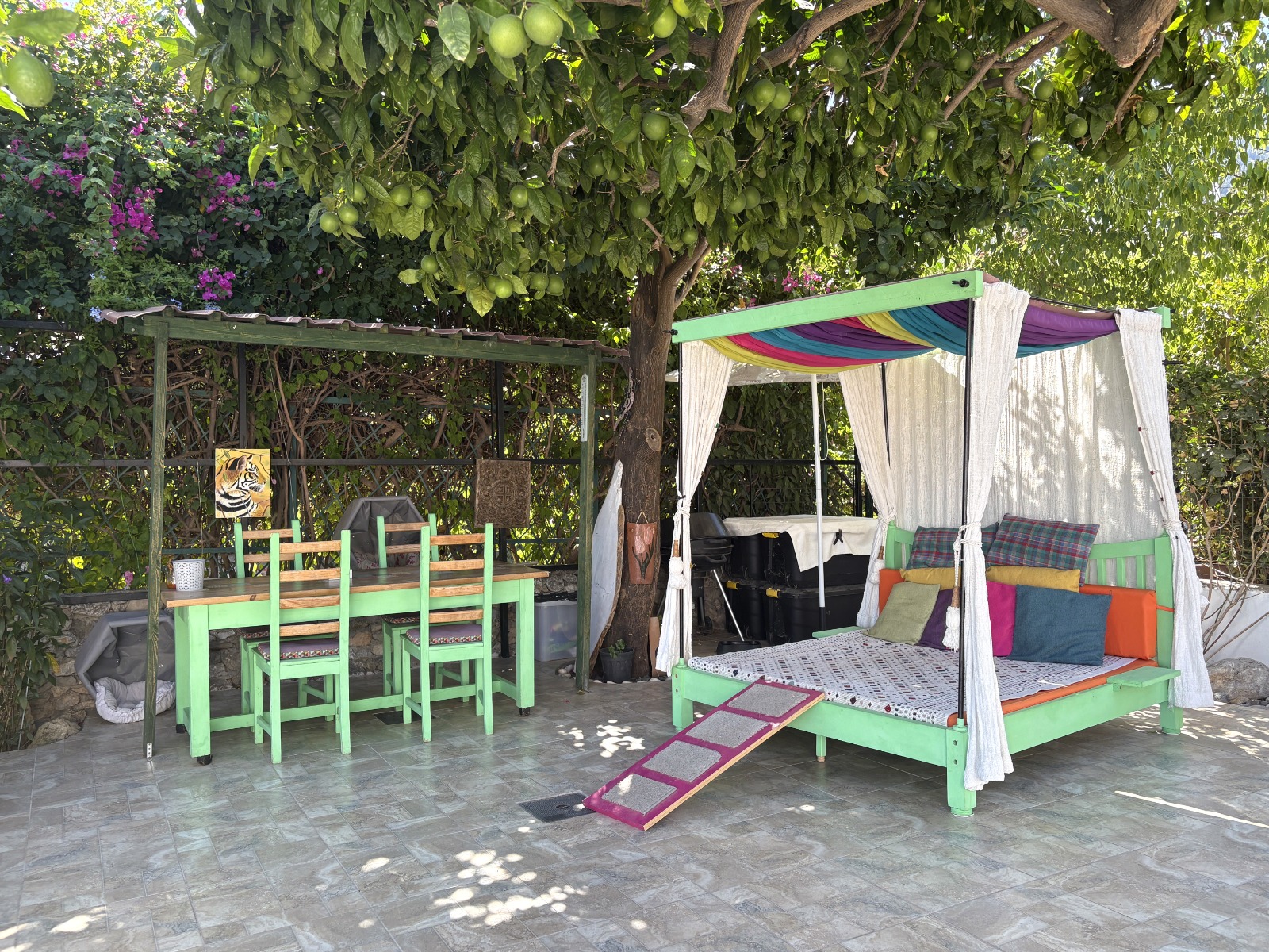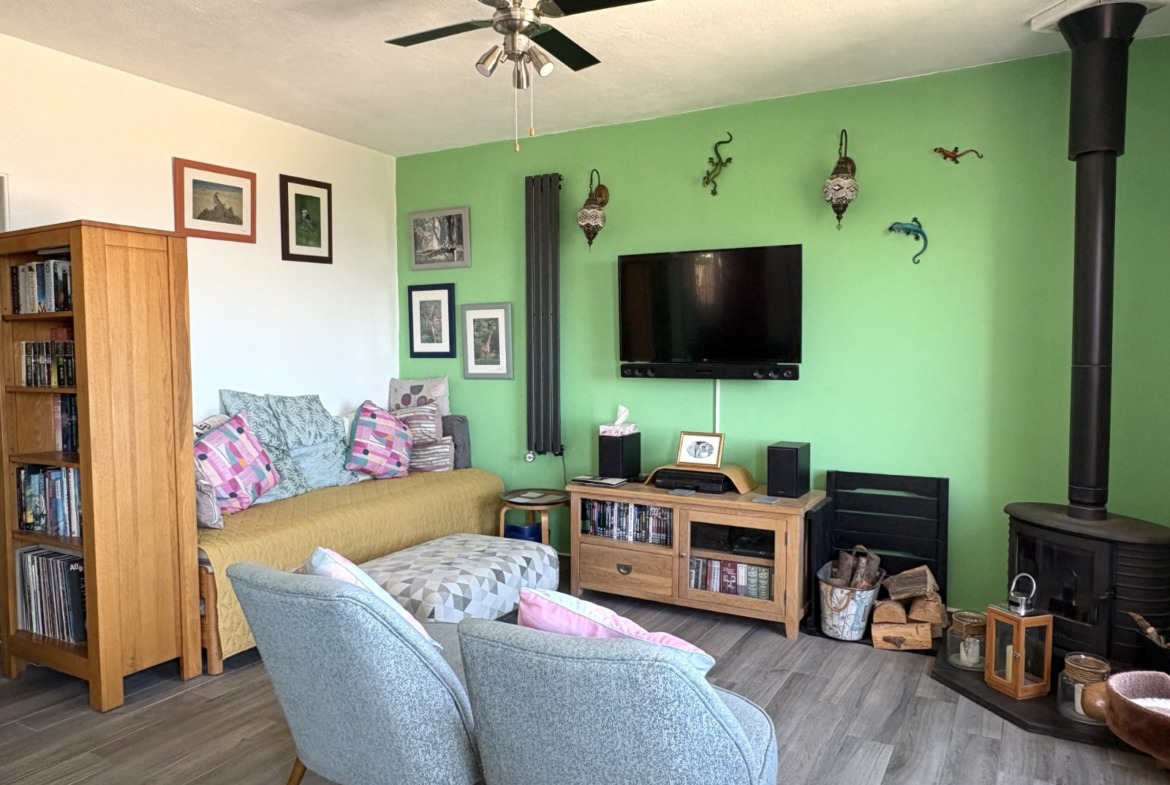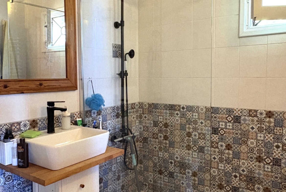 Yaşam alanı, geniş ve açık planlı bir oturma odası, yemek odası ve panoramik pencerelere sahip mutfak alanı, odun sobası ve büyüleyici bir balkondan oluşmaktadır. Ayrıca yeni döşenmiş bir duş odası, bir yatak odası ve misafirler için ikinci yatak odası olarak da kullanılabilecek bir ofis alanı da mevcuttur. Büyüleyici bahçenin içindeki geniş teras, oturma ve yemek için geniş bir alan sunarken, pratik depolama alanları, özel bir dış duş ve vestiyer de mevcuttur.